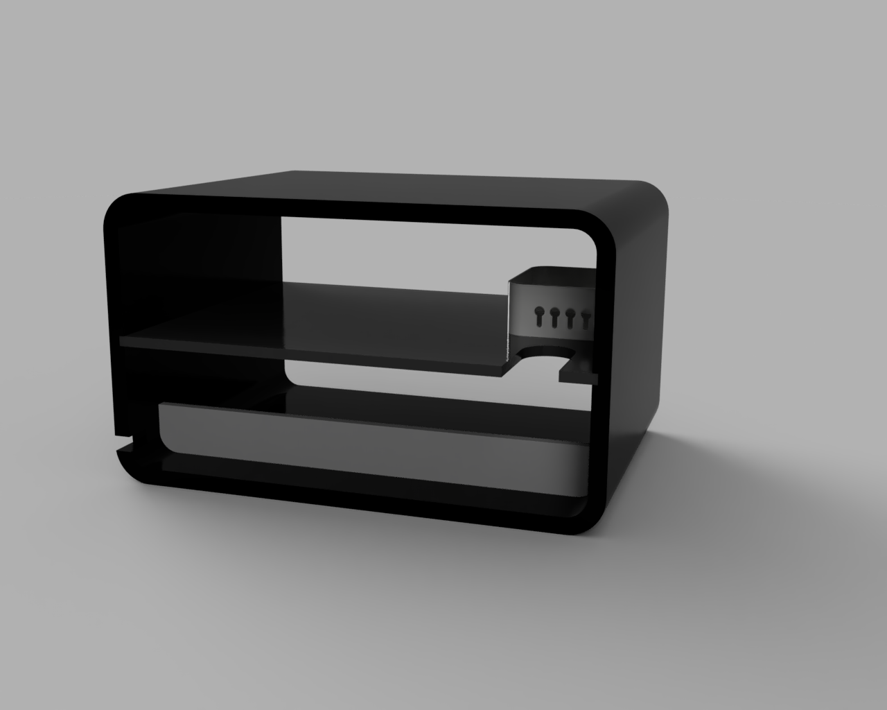 Miro er en kompakt ladeenhet med flere rom og skuffer for oppbevaring av kabler og enheter.